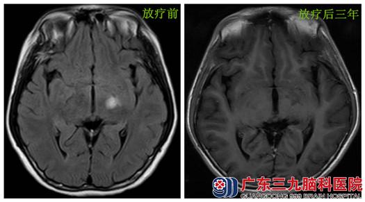 现患者放疗后3年返院复查:神志清楚,言语流利,右侧肢体肌力V-级,左侧肢体肌力正常,期间未再出现肢体乏力反复,头颅及脊髓MR未见明显肿瘤复发征象,患者正常上学。