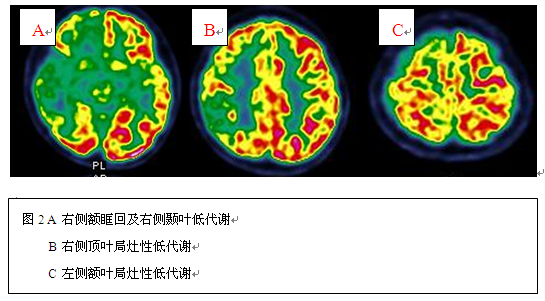 辅助检查:头颅MR示右侧额底、左侧额叶、右侧颞叶内侧多发异常信号影(具体见图1)。头颅CT示室管膜下钙化结节影。PET示右侧额叶底面、右侧颞叶及右侧顶叶多发低代谢区(见图2);VEEG示发作间期各脑区见癫痫样放电,以右侧前头部著;发作期为右侧前头部起源的部分性发作(见图3)。心脏彩超、腹部彩超:无异常。韦氏智力测试:言语智商50,操作智商57,全量表智商49;韦氏记忆测试:9分。