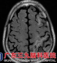 图 1 术前MRI提示:左侧额顶叶多发软化灶形成伴胶质增生;