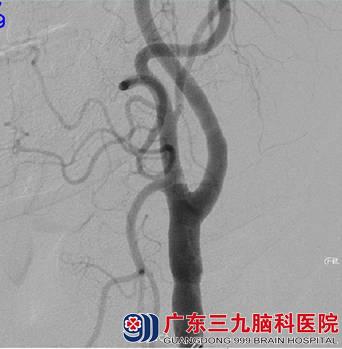图 3 术前DSA示:左侧颈内动脉起始部重度狭窄,狭窄率约80%;
