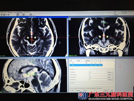 手术通过神经导航系统软件,精准的测算出患者的靶点部位。术中通过立体定向导航系统+Leadpoint电生理记录仪联合精准的定位,放置电极到患者的脑内靶点。