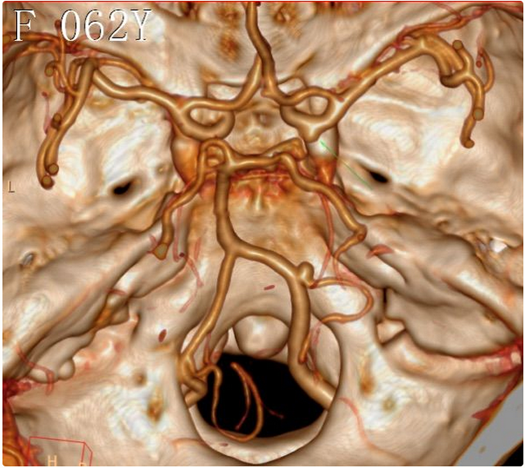 CTA提示:1、右侧小脑后下动脉起始部动脉瘤 2、右侧后交通动脉瘤