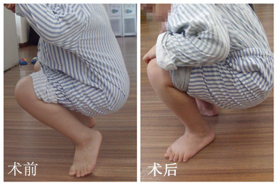 经术前讨论,脑瘫诊疗中心为阿力进行跟腱延长手术,加以石膏外固定,术程顺利。术后5周,阿力返院拆除石膏,并进行针灸、电疗、运动等康复训练。经一个疗程的康复训练,阿力的双下肢外旋较前改善,小腿三头肌肌张力约1级,双足下垂消失,双踝背伸10°。阿力惊奇地发现,自己走路比以前稳当多了,现在的他显得自信了不少,“这下我也可以自己蹲厕所啦!”