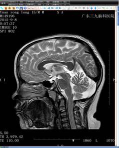 头颅MRIT2+增强(矢状位)+FLAIR(图一)