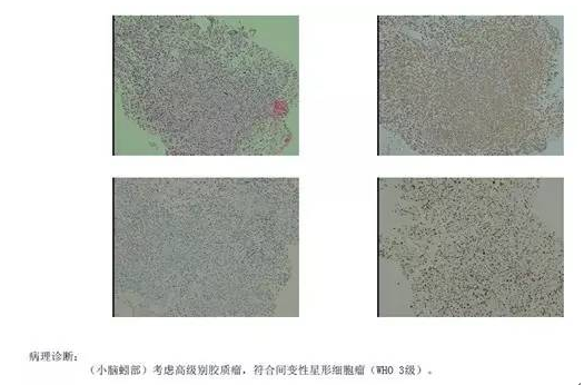 由神经外一科张良主任主刀在全麻下行“小脑蚓部占位性病变切除术”,于显微镜下顺利全切肿瘤。术后,庾先生的头晕,视物旋转不适症状较前好转,康复出院。术后病理结果提示:高级别胶质瘤,符合间变性星形细胞瘤(WHOIII级)。