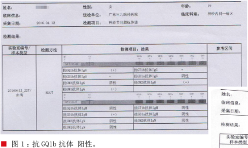Bickerstaff脑干脑炎为自身免疫性脑炎中的一种特殊类型,临床罕见,且易误诊。Bickerstaff脑干脑炎是一组以意识障碍、眼外肌麻痹、对称性迟缓性四肢瘫、共济失调、双侧面瘫、Babinski征、瞳孔异常和球麻痹等表现的临床综合征。Bickerstaff脑干脑炎可于任何年龄、性别起病,儿童及青壮年多见,发病前4周内有感染史,大多为急性起病。上呼吸道感染是Bickerstaff脑干脑炎最常见的前驱感染症状,4周内出现进行性、相对对称的眼肌麻痹和共济失调、意识障碍或锥体束征阳性(反射活跃或病理征),肢体肌力>4级。发病后脑脊液检查常为正常,4周内出现脑脊液蛋白细胞分离。本患者亚急性起病,意识水平下降、一过性双侧眼外肌麻痹、共济失调、瞳孔异常和球麻痹等表现,行抗神经节苷脂抗体谱抗体检查提示GQ1b IgG抗体阳性,可确诊为Bickerstaff脑干脑炎。本病需及时就诊明确诊断,避免误诊,尽早对症治疗。因此,如有类似情况请尽早到有条件医院就诊治疗。
