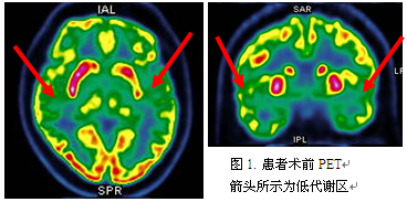 入院后完成相关检查,VEEG::间歇期:癫痫样放电,弥漫性,左半球著;发作期:临床:先兆(听觉、植物神经)→植物神经症状→右面部强直-阵挛→全面性强直-阵挛发作 ;发作期脑电图无侧向性。头颅MR未见明确异常。头颅PET:左侧颞横回、左侧岛叶低代谢,右侧颞盖低代谢。