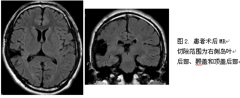 科内讨论后结果:考虑为岛叶癫痫可能性大,以岛叶后部为重点,以左侧为著,需要立体定向脑电图(SEEG)植入,电极主要覆盖左侧岛叶、顶盖、颞盖,右侧岛叶少量电极以鉴别侧向性。SEEG共记录13次发作,发作症状学同前, 发作期脑电图提示右侧L’9-11电极驻点(颞上回后部-颞横回-岛后长回)放电迅速扩散至左侧对称的L电极(颞上回后部-颞横回-岛后长回),引起右侧的强直-阵挛发作。手术切除右侧岛叶后部、颞盖和顶盖后部,术后病理:符合局灶性皮质发育不良(Ib)。患者术后至今1年半无发作。