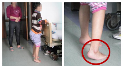 脑瘫诊疗中心尹靖宇主任为文文查体,粗测文文的智力基本正常,能与家人交流,说话较费力,语音欠清晰,有轻度流涎;双上肢活动灵活性较差;双足呈现剪刀步态,屈髋屈膝,双足下垂内翻,双踝关节可背伸-20度,手法矫正阻力大,可扶物站立,不能扶物行走。