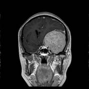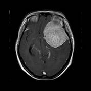 术前MRI可见左侧额颞巨大占位,增强均匀强化,考虑脑膜瘤