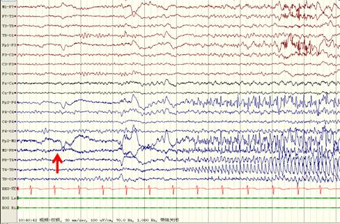 视频脑电图:间期:癫痫样放电,右侧颞、额区;发作期:发作型,右侧额、颞区棘波节律。