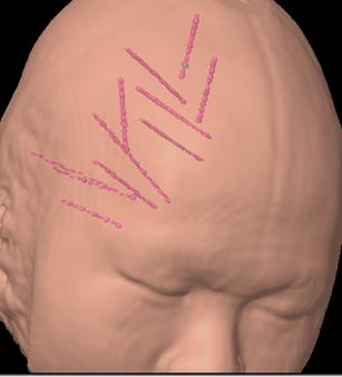 经科室病例讨论,外六科吴杰主任考虑患者癫痫灶位于右侧额颞部可能性大。为精确定位癫痫灶,几日后,医生全麻下行“右侧额颞顶深部电极置入术”。共植入11根脑深部电极。