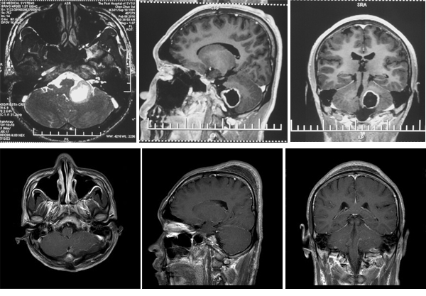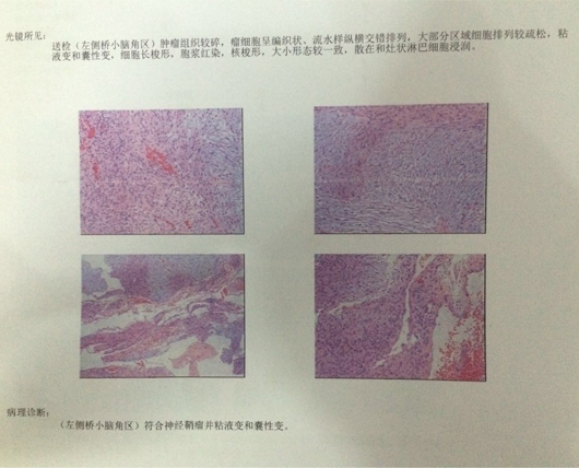 陈某近期突然无缘无故的出现头晕,行走不稳,可当时家里人和他都没有在意这些不舒服。可就在近1周头晕加重,且出现左耳听力下降,呕吐,严重影响到了自己的正常生活和工作,这才到广州一家综合医院就诊,行磁共振检查,诊断“左侧桥小脑角区肿瘤”,肿瘤呈囊实性,大小约30mm×22mm×26mm,有蒂长入左侧舌下神经管,增强扫描环形强化,脑干、小脑受压,四脑室稍变窄。这一下就让陈某一家人十分焦急,多方打听后,决定到广东三九脑科医院血管神经外科就诊,办理入院后初步检查显示陈某听力粗测正常右侧正常,左耳听力下降。伸舌居中,耸肩有力。四肢肌力5级,肌张力正常。腱反射正常,巴氏佂阴性。左侧跟膝胫试验阳,步行向左侧偏移。完善CTA以及其他术前检查,积极术前准备,于近期在全麻下行左侧桥小脑角区肿瘤切除术,术中见肿瘤呈淡红色,与迷走神经粘连紧密。小心分离出迷走神经,以及肿瘤脑干面,最后从舌下神经分离出肿瘤,全切肿瘤,术中电生理监测正常,术程顺利,术后给予抗炎,止血,营养神经等治疗。术后病理结果:舌下神经良性肿瘤。