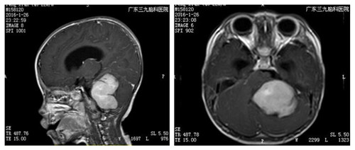 2016年1月,刚满1岁的滔滔突发头痛、呕吐,而且有走路不稳的症状。在当地一家医院以“胃病”治疗一段时间后,病情不但没有好转,反而愈发严重。后查头颅CT,显示:左侧小脑占位性病变,梗阻性脑积水。于是,父母带他来到广东三九脑科医院就诊,经小儿神经外科杨宝应主任面诊,考虑滔滔患髓母细胞瘤的可能性大。