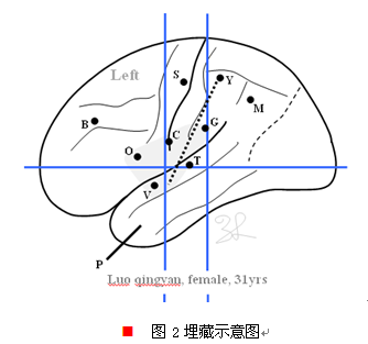颅内电极脑电图:间歇期: HFO ,癫痫样放电,C’7-12著(1250-2000Hz).C’1-5 (80Hz) ,Y’1-11 (<80Hz) ,Y7-9(400Hz).发作期:临床:先兆(左侧面部、口腔发麻)→右侧肌张力障碍→左侧手足舞蹈徐。EEG:发作型,C’7-12→C’1-5,Y’8-11,Y6-12.于9-2日行右侧额顶岛致痫灶切除术。