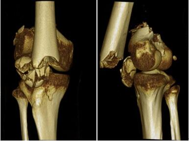 做好术前准备后,王延斌主任及其团队在全麻下为小涛实施“右股骨髁上髁间骨折切开复位内固定术+左跟骨清创负压吸引术”。由于骨折部位结构复杂,粉碎严重,手术难度大。手术从晚上7点到次日的凌晨3点多,手术时间持续约八个小时,顺利完成。