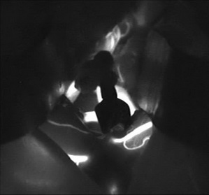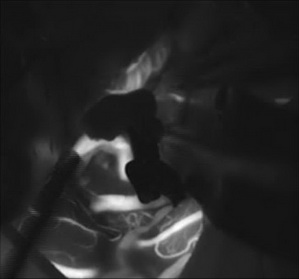 如图所示:原有血管血流清晰,被夹闭动脉瘤不显影