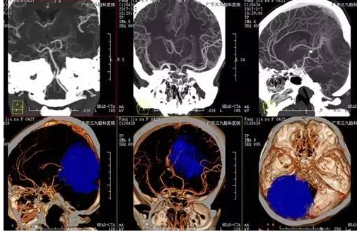 入院后完善相关术前检查, CTA显示肿瘤血供丰富,磁共振增强邻近脑组织稍扩大,显示肿瘤大小8.0cm*7.2cm*6.5cm,考虑到患者瘤体大,血管丰富,为保证病人的安全,科室专家讨论,选择择期全麻下行“小脑幕脑膜瘤切除术”,手术由神经外一科主任张良主刀完成,术程顺利,术后患者恢复良好,未见明确并发症,术后MR提示肿瘤切除,术后病理提示纤维细胞型脑膜瘤(WHO I级)。