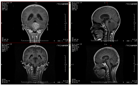 患儿吴某,女,7岁,反复头晕头痛伴恶心呕吐、行走不稳一周,遂就诊当地医院行头颅MR示:四脑室肿瘤,脑疝形成,脑阻性脑积水。为求进一步治疗,转入我院治疗。完善术前准备后,行四脑室肿瘤切除术,手术由神经外二科主任林涛主刀完成,术中肿瘤全切。病理:髓母细胞瘤,术后患者神志清楚,肢体活动良好。