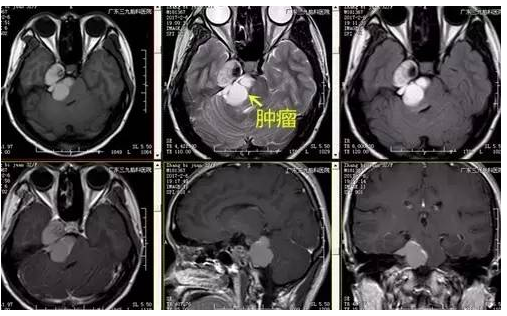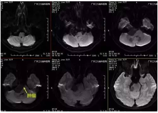 张女士,32岁,因右侧面部针刺样痛疼伴麻木持续2月余未有缓解,速来医院就诊,门诊CT提示右侧中后颅窝等密度影,收入住院治疗。入院后完善相关术前检查,术前DWI检查示右侧跨中后颅窝占位性病变呈低信号,术前磁共振示哑铃状病变,各序列以高信号为主高低混杂信号影,瘤体约4.5cm×3.7cm×3.3cm,完善检查后,行右侧中后颅窝占位性病变切除术,手术由神经一科主任张良主刀完成。术程顺利,术后患者恢复良好,未见并发症,术后MR提示肿瘤切除。