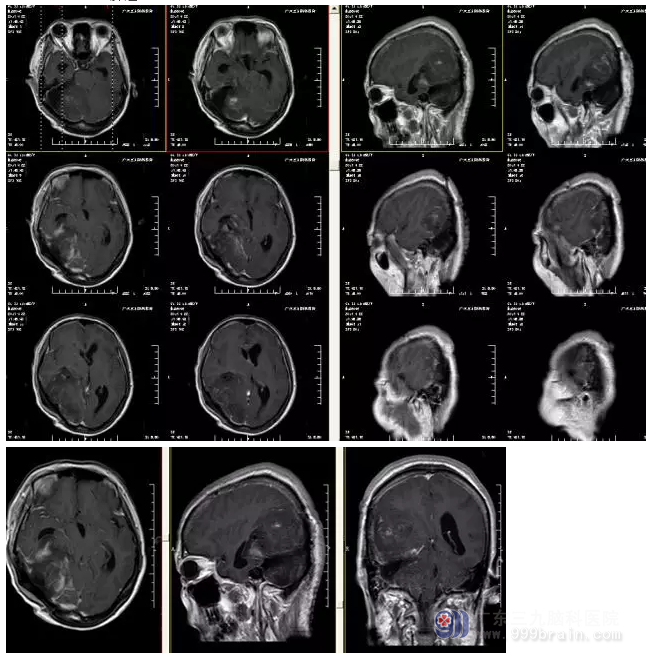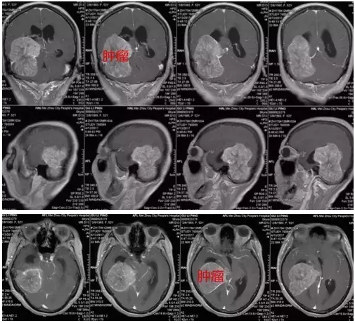 古女士,52岁,头痛1年,遂渐出现恶心、呕吐、四肢乏力5天,外院CT检查结果提示右侧天幕巨大占位性病变,为求进一步,有效治疗,来我院就诊。