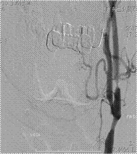 颅脑MRI提示:双侧基底节、放射冠区多发腔隙性脑梗死(如图一);颈部血管彩超提示:双侧颈动脉重度狭窄。3D-ASL提示:右侧额叶局部灌注减低,感兴趣区CBF测值为(28.39±12.97)mL/100g/min,低于对侧镜像感兴趣区测值(57.15±13.80)mL/100g/min(如图二)。DSA示:1、双侧颈内动脉起始部重度狭窄,狭窄程度均约90%,右侧狭窄长度约8mm(如图三);2、左侧颈总动脉末端中度狭窄,狭窄程度约50%,狭窄长度约1.0cm(如图四)。