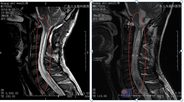 患者黄某,男,21岁,无明显诱因出现右上肢乏力,麻木感,缓慢加重,症状持续1个月,遂到当地医院就诊,行颈部MR提示颈髓空洞症,未予特别处置。今为进一步诊疗,来我院就诊。