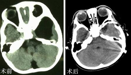 完善相关检查,排除手术禁忌症,小儿神经外科成功为患儿实施“左侧颞极蛛网膜囊肿切除术”。术后患儿恢复良好,术后15天顺利出院。手术后5月复查CT显示囊肿基本消失。