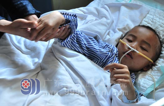 至3月1日,小钊在广东三九脑科医院住院半个多月,感染成功得到控制,术后伤口也逐渐愈合。笔者见到小钊时,虽然他依然昏迷,但受到外界刺激时,他会睁开眼睛、转转眼球或是手动一动。据其父亲温桂新介绍,他们夫妇俩都是农民,以务农为生,上有近80岁的老母亲。下有2个儿子,大儿子今年13岁,小钊是小儿子,今年上1年级。“他很聪明,100以内的加减法他很快就能口算出来,很惹人疼的,现在却躺在这里动都不能动,也不知道什么时候才能醒来……”说起儿子,这个51岁的中年汉子也不禁悲伤落泪。温桂新介绍,目前小钊共花费近8万元医疗费(含在当地医院手术的费用),肇事者家庭也并不富裕,根本没有赔偿能力,目前仅赔偿了1万多元,且还是温桂新多次登门、致电好不容易“讨”来的。为了给小钊治病,他们已经将房子抵押给银行,贷款3万元,也拜访了所有能够借到钱的亲戚,但筹到的钱并不多。他说:“我们当地本来就不富裕,亲戚朋友经济条件也不怎么好,基本上借不到钱。”同病房的周阿姨称,小钊的母亲陆伙梅天天以泪洗脸,她时而呆呆地看着儿子,时而又楠楠地自言自语,都是“儿子你醒醒吧”,“妈妈在这”,“睁开眼睛看看妈妈”……之类希望儿子康复的话语。周阿姨说:“为了给儿子治病,他们几乎倾家荡产,连吃饭的钱都没有,我今天还给了100元他们吃饭。”www.999brain.com