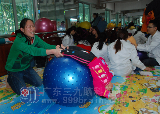 揣着一丝希望,母亲只身带着小丸子从西安来到了广州,住进了广东三九脑科医院脑瘫康复诊疗中心。入院后,医院的医生给她做了详细的检查,王健主任总结病例特点如下:1.运动、智力、语言等功能发育较正常同龄儿迟缓;2.目前患儿1岁4个月抬头有力,但坐不稳,不能翻身,不会爬行,双手不会主动抓握,会认人,不会讲话,对外界声光刺激反应迟钝。3.既往及个人病史:患儿系第二胎,孕七个月在医院出生,出生时体重低,皮肤发紫等窒息缺氧等症状;鉴于以上症状,王健主任指示,加强营养脑神经,促进大脑发育,改善脑循环等药物治疗,配合运动治疗、电疗、针灸等康复综合治疗,加强坐立、爬行、肢体活动等康复训练,降低四肢肌张力,改善四肢运动功能。