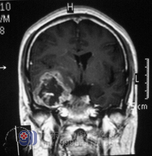 刘先生,今年54岁,在商场的打拼让他连小感冒都没有,一周前无明显诱因突然出现头晕,家里儿子、女婿们以为生意过于操心劳累所致,休息了一个星期也不见好转,于是在外院做头颅CT显示:小脑占位。家里人都不相信这个结果。后来刘先生的儿子在网上搜索到三九脑科医院,找到三九脑科医院神经外五科鲁明主任,经头颅MR检查及专科查体,脑组织受压明显,鲁明主任初步诊断刘先生所患为:右侧颞叶占位,初步考虑为恶性胶质瘤。http://www.999brain.com/