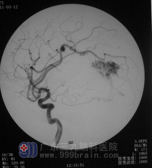 杨老师在一所小学教音乐,5月6日晚上10点左右,突然出现头晕、头痛伴恶心,没有呕吐,双手紧握;当时神志清醒,休息后无好转,第二天在当地医院就诊,头、颈部CT发现:脑右侧颞叶出血,可见钙化,考虑动静脉畸形,由于当地的医疗技术设备有限,同时也不能排除有二次出血,立即转到了广东三九脑科医院综合神经外科。