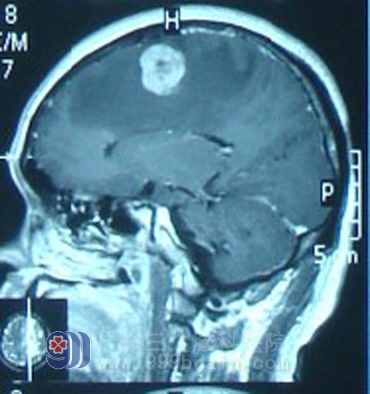 完善相关检查后,梁先生接受了左额中央区转移瘤切除术,术后病理回报是高至中分化腺癌。梁先生术后今年1月开始行全脑放疗及肺部适形放疗,后脑局部再行X刀加量治疗。放疗期间,梁先生未出现特殊不适。放疗结束后遵嘱按时行6周期静脉化疗。现梁先生一般情况良好,复查MR显示肿瘤明显缩小,得到了良好的控制。http://www.999brain.com/