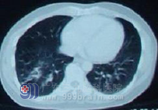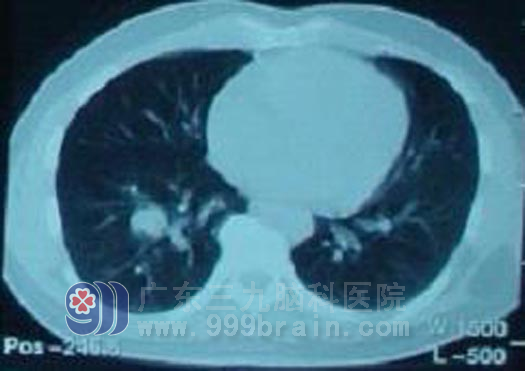 广东开平的梁先生,42岁,2010年12月开摩托车时突然晕厥,当即摔倒在地,不省人事,20分钟后意识清醒,在当地医院行头颅CT示左额顶叶多发占位。第二天即到广东三九脑科医院治疗。入院行头部MR检查示左额顶叶多发占位性病变,胸部X线示右肺下野中内带肿块影,考虑肿瘤性病变。虽然梁先生无其他躯体症状,但结合其影像检查结果考虑为肺癌脑转移。