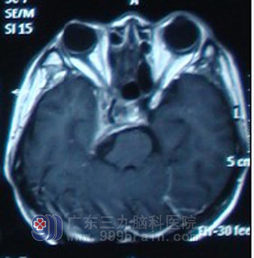 今年3月,吴先生再次出现恶心,并伴有右眼视力下降,再次复查鼻咽CT提示肿瘤较2010年5月有所增大。4月11日,吴先生在外院就诊过程中突发烦躁,胡言乱语,四肢不自主活动等症状,急诊送入广东三九脑科医院肿瘤综合治疗中心求进一步治疗,来院后急行CT示:右侧海绵窦占位性病变,压迫脑干,脑室扩大、脑积水。4月12日急诊在全麻下行脑室外引流术,4月13日开始行急诊放疗,病情逐渐好转。4月18日拔除引流管,吴先生已无烦躁胡言乱语症状,未出现头痛恶心呕吐等不适。随后行复发肿瘤区域成放疗及辅助化疗。现在吴先生康复良好,肿瘤基本消失,定期会院复查。http://www.999brain.com/