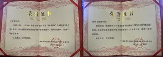在会议期间举办的“神经危急重症护理个案管理展示”中,我院神经外七科个案《一例脑出血术后并发高血糖高渗综合征的护理体会》、重症医学科个案《一例TBI患者合并PSH诱导“脑-肠轴”失调的护理个案》荣获一等护理个案,重症医学科《晚期癌症合并脓毒症患者的腹泻干预与分层护理实践》荣获三等护理个案,我院神经外七科龙飘作为一等个案的代表作案例分享。