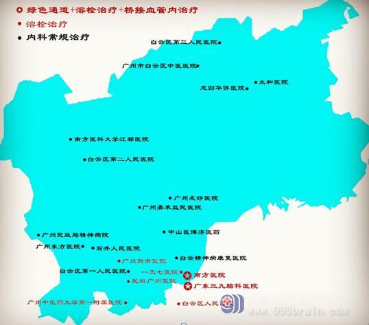 另外,我们汇总了白云区大部分医院对急性脑梗死的治疗方式,并且以地图的形式展示出来,为急性脑梗死患者的治疗提供力所能及的帮助。