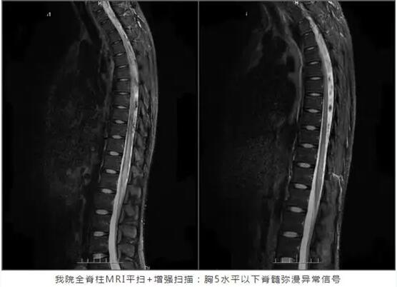主管医生陈伯勇医生结合症状、体征、影像资料等,认为患者是急性脊髓炎的可能性较大。考虑到患者病情进展快速,入院后即予丙种球蛋白冲击治疗,并继续完善相关检查。