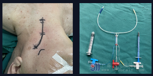 (3)临时阻断颈内动脉,颈外动脉和甲状腺上动脉,颈内动脉。测量颈内动脉残端压力,根据脑电监测变化的幅度决定是否使用颈动脉转流技术;