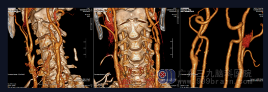 1.4 结果:术后一般情况尚可;无声音嘶哑、头晕好转;神经影像学显示左侧颈内动脉起始部管腔狭窄较前明显缓解,斑点状高密度钙化灶已消失;术后治疗10天,拆线出院。