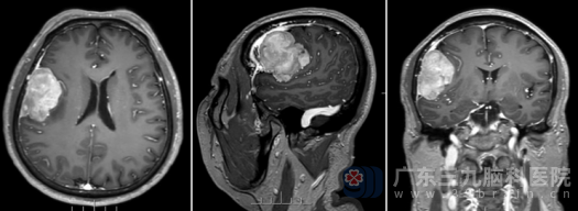 为进一步明确诊断,陈某于2月26日在该院神经外科门诊接受了头颅磁共振(MRI)检查,结果显示右侧额部存在一个约50mm×48mm×30mm的占位性病变。面对这颗悄然生长在颅内的“不速之客”,患者及家属心急如焚,为寻求更专业的治疗,他们慕名来到广东三九脑科医院神经外十科。