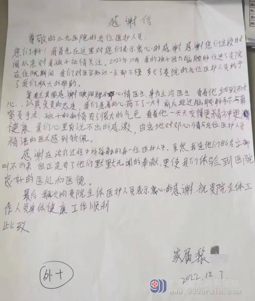 神经外十科感谢信