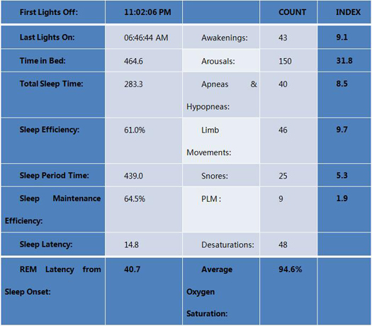 诊治经过:睡眠门诊就诊,检查头部MRI未见有异常,心理评估未见有抑郁、焦虑等情绪障碍,完善睡眠监测检查。
