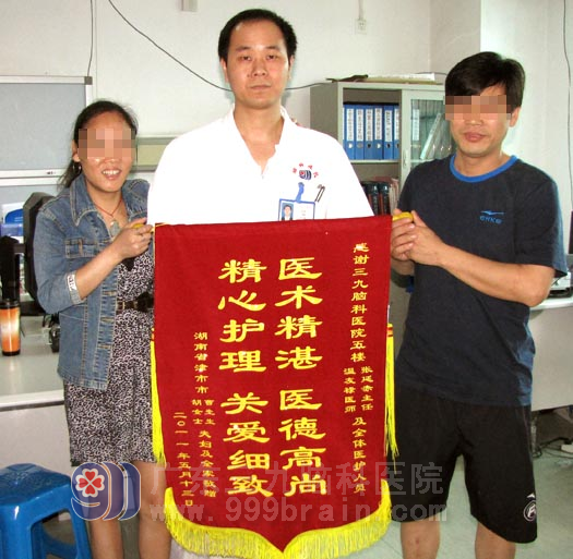 家属觉其精神明显异常,遂于2011年4月19日带李女士来到广东三九脑科医院治疗。心理行为医学科 专家结合李女士的各项检查结果及既往史,综合诊断其为:曲马多所致精神障碍。遂予以心理治疗为主、物理治疗、行为矫正、药物治疗为辅的疗法,经过25天的精心治疗及细心护理,李女士终于康复出院了。今日特送来锦旗一面,以表谢意。
