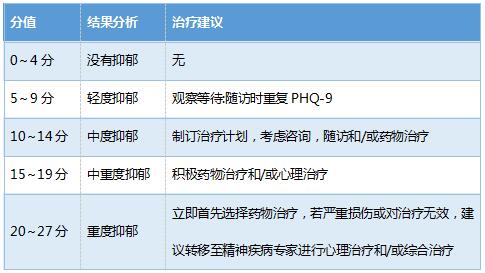 问卷均是由患者基于自己过去两周的情况进行自评,依据患者自评得分结果进行评估和判断。计算总分每题相加,得到最终的分数。对于核心项目,项目1、项目4和项目9,任何一题得分>1(即选择2、3),需要关注。项目1、4,代表着抑郁的核心症状,项目9代表有自伤意念。
