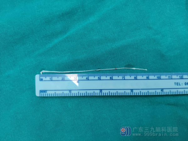 7月27日,鲁明团队为患者在全麻下行左侧颞枕叶占位病变切除术。在术中电生理监测检测和神经导航定位的辅助下,医生顺利抓取出一条长约9厘米的白色裂头蚴活虫,并将周围的肉芽肿组织全部切除。