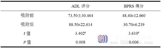 本组10例患者行蛋白A免疫吸附治疗后,临床症状均有改善,血清抗NMDA抗体滴度、脑脊液抗NMDA抗体滴度和简明精神病评定量表(BPRS)评分有不同程度下降,日常生活能力量表(ADL)较前提高,差异具有统计学意义。所有患者均病情好转后出院。统计结果如下: