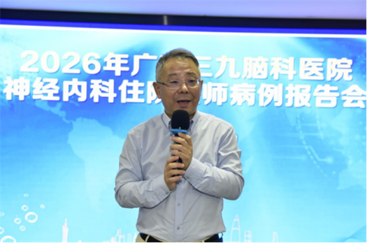 1月30日下午,“2026年广东三九脑科医院神经内科住院医师病例报告会”成功举办。来自医院神经内科的17名住院医师同台竞技,分享临床实战经验,我院院长王展航及神经内科、检验医学科、影像科、神经电生理等多学科专家现场指导点评,神经内科规培基地教学主任李波担任本次报告会主持人。