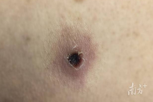 方姨回忆,大约在8月中旬,强叔就察觉自己臀部长了一个“小疮”,由于不痛不痒,当时只是用手抠掉了。“过了快一个月才发烧,怎么也想不到是虫子咬的。”