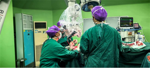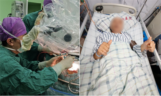 罗似亮在手术(左);患者为神经外七科团队点赞(右)